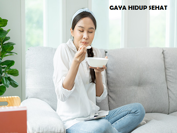 Usahakan makan dalam porsi seimbang tiga kali sehari dengan tambahan camilan sehat. Pola ini menjaga kadar gula darah tetap stabil dan mengurangi keinginan makan berlebihan.